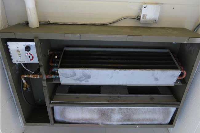 (12) Ceiling mounted fan coil in the entrance of a commertial building